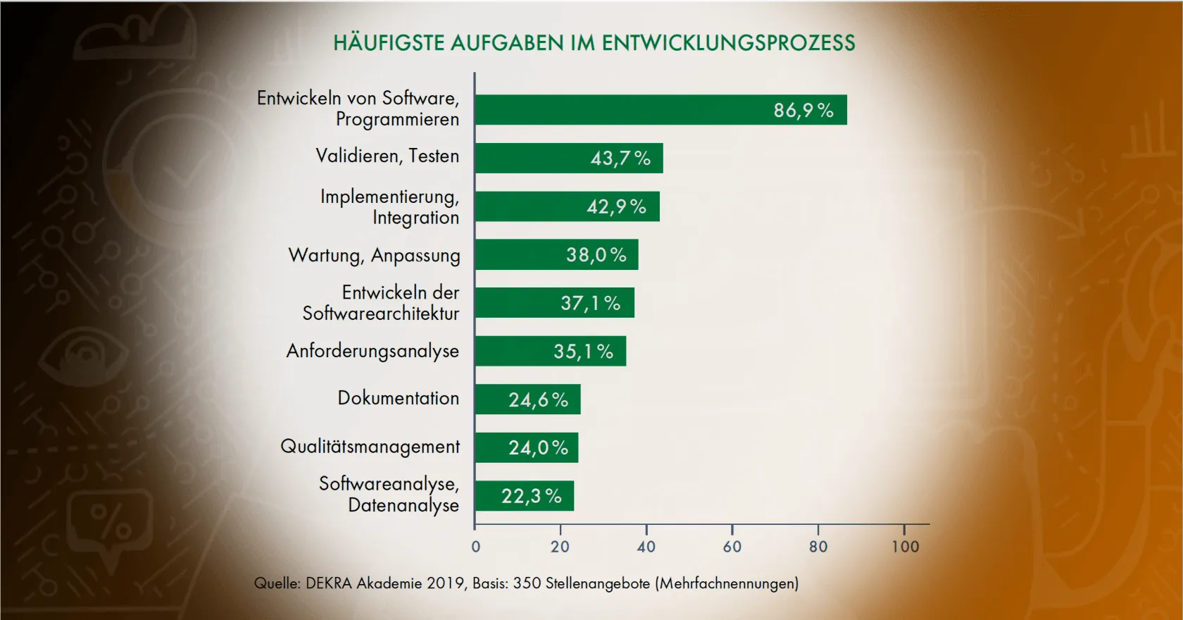 Der Dekra Arbeitsmarkt-Report von 2019 berichtet: der Arbeitsalltag des Entwicklers ist viel mehr als nur „Coding“. Nicht zuletzt wegen der immer schnelleren Updatezyklen, engeren Deadlines und begrenzten Personalressourcen.